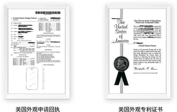 A:美国外观设计专利申请文件应对设计人和外观设计予以说明,随后申请人应提供每一张图片或照片的简要说明。一般情况下,申请文件里除了对每一幅视图进行介绍外,很少有关于外观设计的描述。如果使用了虚线,则必须描述视图中不被视为外观设计的部分。对于通常在使用中看不到的外观设计部分,则无需显示或予以说明。每一件外观设计专利的权利要求仅仅引用图示,而图示将决定专利保护的范围。